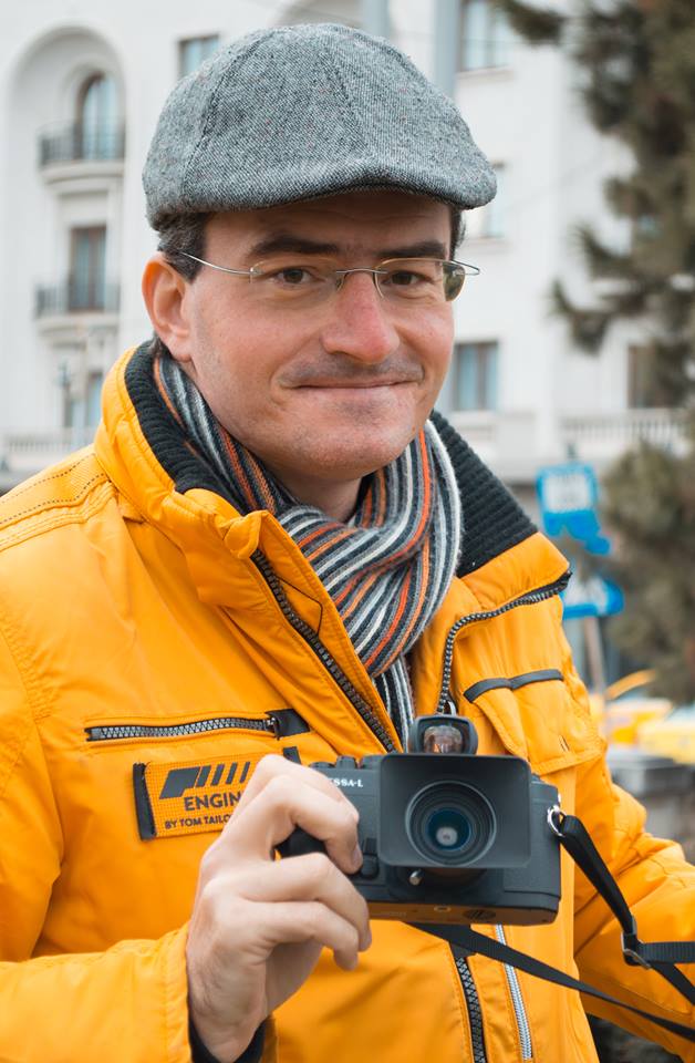 Zâmbitor, îmbrăcat într-o geacă galbenă și fericit că a găsit ocazia perfectă să folosească aparatul de fotografiat pe film Bessa L. Așa l-am cunoscut pe Vlad Eftenie, un om cu o energie pozitivă molipsitoare și unul dintre fotografii care reușesc să promoveze Bucureștiul prin intermediul cadrelor pe care le realizează, pe internet sau la expoziții. Este modest, dar vorbește cu mare drag despre marile lui pasiuni: arhitectura și fotografia.