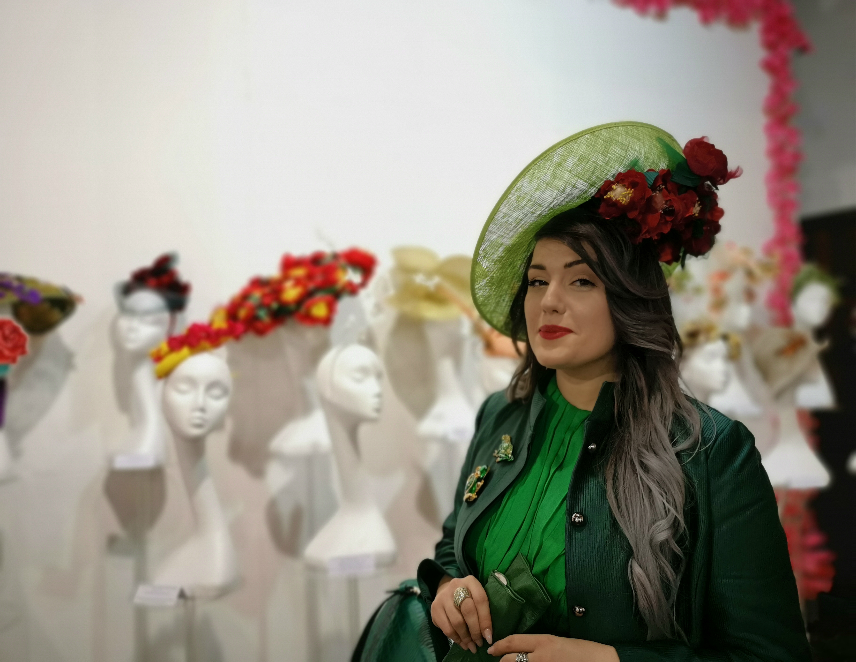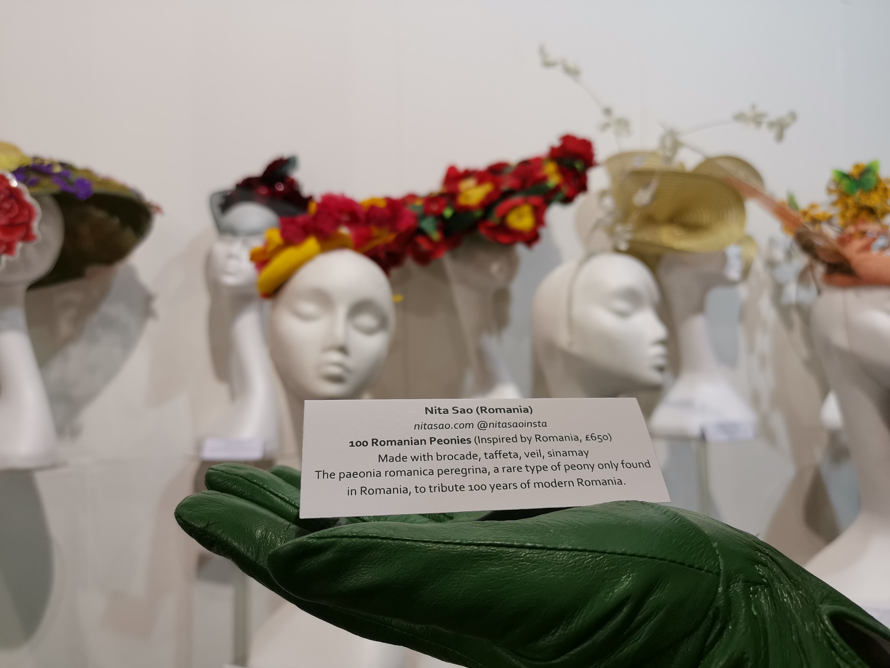 Mi-am dat singură seama cum se realizează accesoriile de cap cu care am început business-ul dar ulterior am urmat și o serie de cursuri de realizare pălării în Londra. A devenit o a două casă, iar ani mai târziu, în momentul în care am aflat că există și o Săptămâna a Pălăriilor, mi-am dorit instant să particip. Am avut astfel ocazia să reprezint România la expoziția oficială. Tematică impusă celor 120+ designeri de pălării, aleși din întreagă lumea, a fost ‘Grădinile Lumii’. Așa a luat naștere pălăria ‘100 de Bujori Româneșți’. Am ales în an Centenar să realizez manual o sută de bujori precum cei care cresc numai pe teritoriul țării noastre iar apoi să găsesc printr-o minune o modalitate de a încăpea toți pe un singur accesoriu de cap.